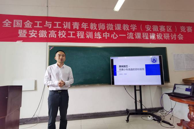 6月19日,全国金工与工训青年教师微课教学(安徽赛区)竞赛在安徽工业大学举行,新葡的京集团8814vip教师方涛代表新葡的京官网参赛,新葡的京集团8814vip院长施云贵带队并进行指导,经过激烈角逐,方涛荣获特等奖。
