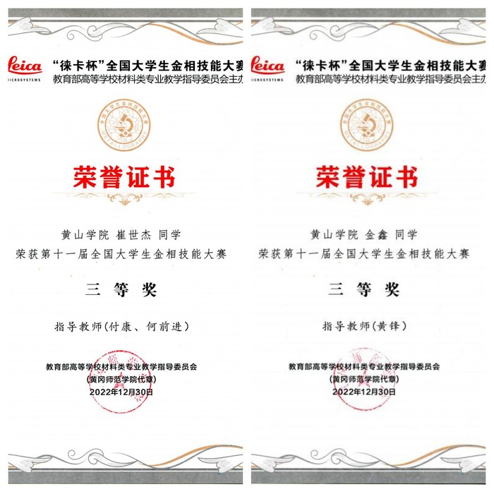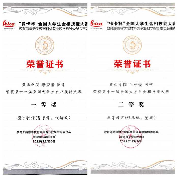 近日,第十一届全国大学生金相技能大赛决赛落下帷幕,共计414所高校的417支代表队(含三峡大学、湖北理工学院和咸阳师范学院的3支编外留学生代表队)3758名选手参加了复赛和决赛。新葡的京官网4名参赛选手全部获得赛事奖项,其中康梦情斩获赛事一等奖,白子俊获得赛事二等奖,崔世杰、金鑫获得赛事三等奖。