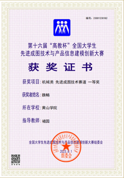 桂文钦同学荣获首届“迎客松”杯黄山市大学生专利创意创新大赛一等奖,第一发明人授权专利1项。